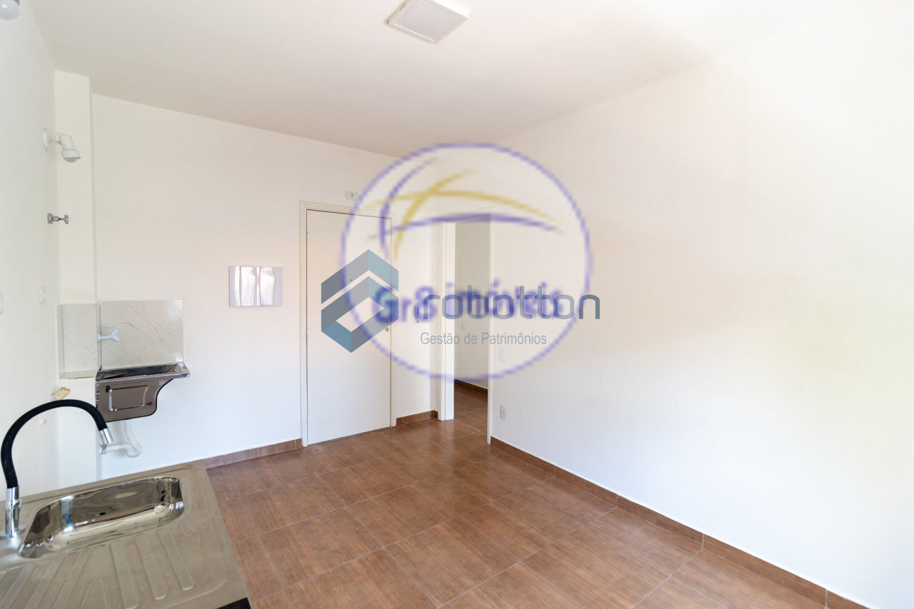 Apartamento com 39m² distribuídos em sala, cozinha com gabinete e cooktop por indução, área de serviço, banheiro social e 1 dormitório.