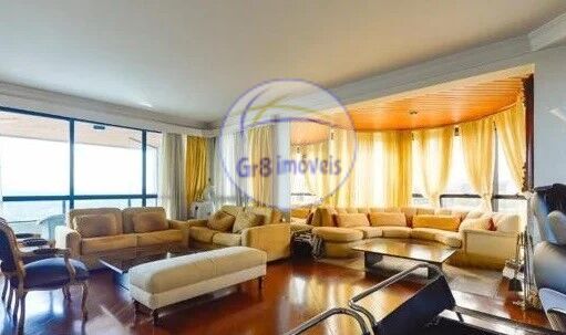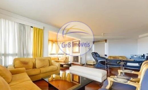 Apartamento com 285m², 3 suítes, sendo a Master com closet, ar condicionado, armários, varandas, salas para 3 ambientes, sendo uma com lareira.