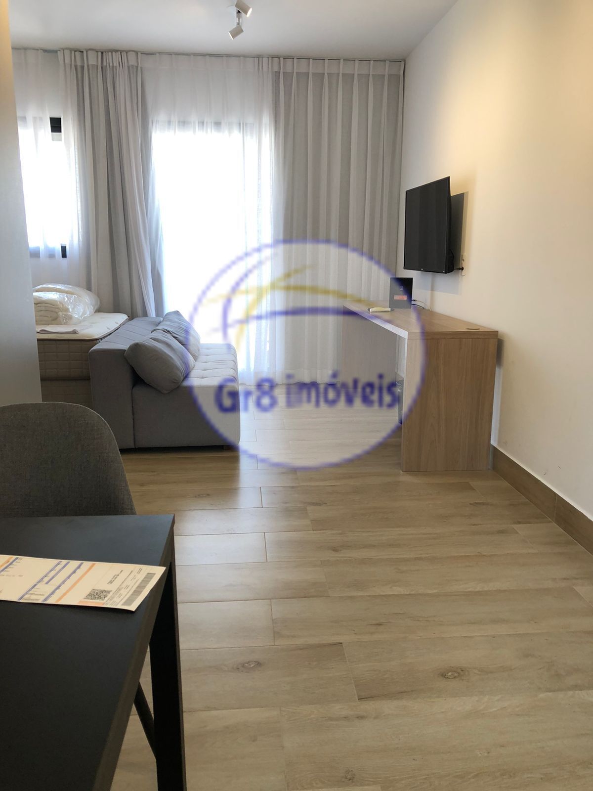 Totalmente decorado: Fechadura eletrônica, Armários e gabinetes no dormitório e banheiro. Banheiro com box de vidro, cuba de semi encaixe com metais Deca, espelho e secador de cabelo, Banheiro com ventilação natural.